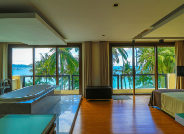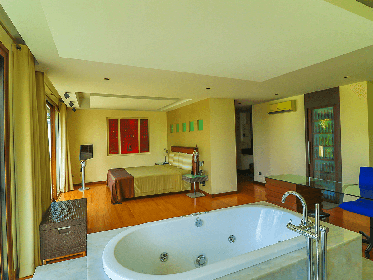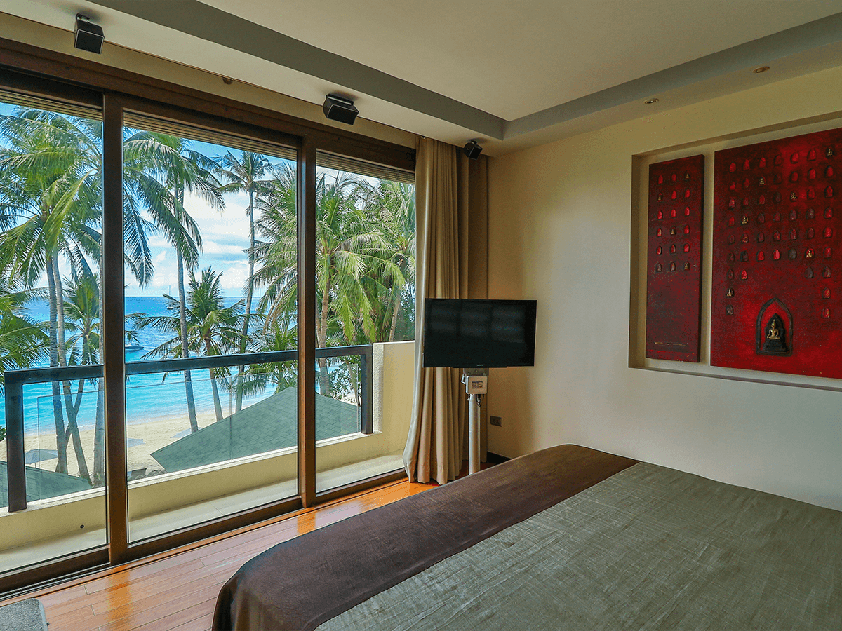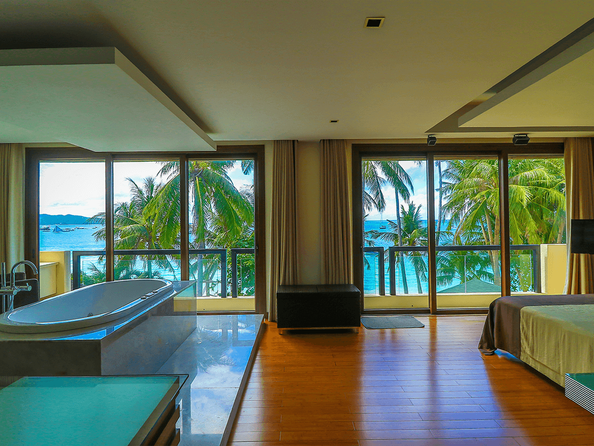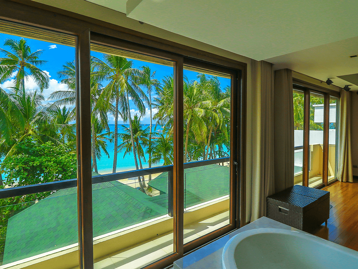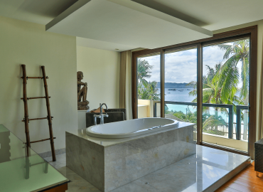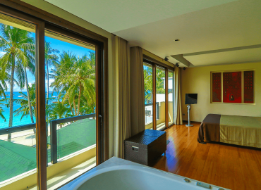 A vision inside and outside. Asian pieces accent this thoroughly modern space on the third floor. Its sleeping area and bath tub overlook the White Beach and enjoys spectacular natural lighting each sunset. It comes with a big desk, a walk-in closet, a bathroom with a separate shower area and toilet. The guest who would like to do some work in the laid back ambiance of Boracay Beach Houses may wish to select this room. Its roof deck offers exhilarating panoramic views of the beach, Boracay, and the islands across the sea.